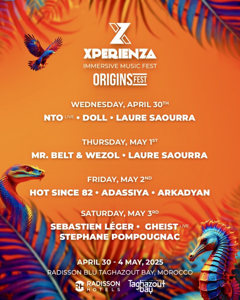 La saison s’ouvre avec Xperienza x Origins Fest by Radisson Hotels, une sorte d’odyssée sensorielle qui aura lieu du 30 avril au 4 mai au Radisson Blu Taghazout Bay dans un espace conçu en théâtre à ciel ouvert célébrant les quatre éléments naturels. D’après les organisateurs, l’expérience dépasse le cadre festif habituel pour devenir une exploration des sens, portée par des artistes de renommée internationale tels que Hot Since 82 ou Sébastien Léger. Ce privilège, qui lie nature, musique et bien-être, reflète une orientation stratégique vers un tourisme expérientiel à forte valeur ajoutée.