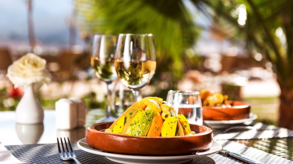 Nos chambres spacieuses, alliant élégance contemporaine et touches d’inspiration locale, créent un cocon de confort propice au repos et à la contemplation. En matière de restauration, nous proposons une diversité de saveurs, allant de la cuisine gastronomique aux spécialités berbères authentiques.