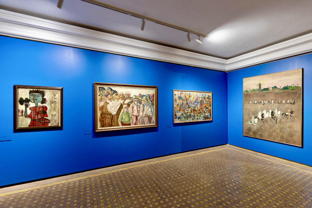 L’exposition propose un parcours chronologique et thématique qui éclaire les grandes étapes de l’évolution artistique marocaine :