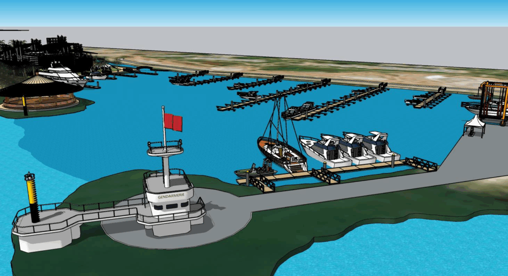 -La mise en place d’une infrastructure de sécurité complète, incluant une brigade maritime et des services de gendarmerie, ainsi qu’une station de carburant pour bateaux.