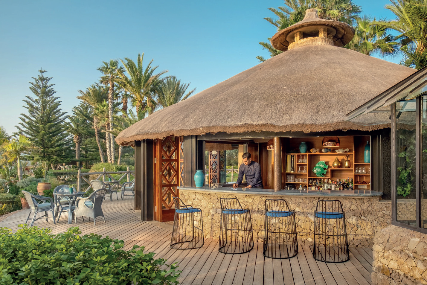 Installé sous un toit traditionnel en Jong de mer, face à la lagune protégée d’Oualidia, le Jan Janz offre une capacité restreinte de 25 couverts, dans une ambiance exclusive et chaleureuse. L’architecture intérieure, avec ses murs en pierre apparente et ses larges baies vitrées ouvertes sur la lagune, crée un environnement apaisant où la brise marine et la lumière tamisée participent à l’immersion sensorielle. Les clients peuvent également opter pour un dîner privé sur la terrasse de leur suite, renforçant ainsi l’expérience personnalisée.