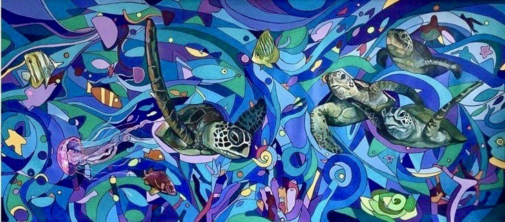 Un motif traverse pourtant les œuvres comme un fil rouge poétique : l’élément naturel. Vagues, forêts, volcans, animaux totémiques… La nature n’y est pas décorative , elle est force active, presque spirituelle. Elle devient langage, celui d’un peuple en dialogue permanent avec son environnement.