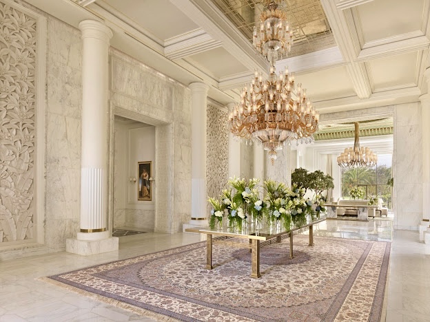 Ce que propose le Ritz-Carlton Rabat, c’est en fait une plongée sensorielle façonnée comme un récit. L’espace joliment décoré se métamorphose en scène : eucalyptus, lions de pierre, tapis de zellige, mobilier Art déco et rituels du hammam marocain deviennent des éléments narratifs. La symbolique spatiale y est omniprésente. Ainsi, l’entrée avec ses deux lions de pierre devient un dispositif de marquage culturel, en inscrivant justement  l’expérience client dans une temporalité mythique, entre royauté marocaine et imagination orientale.