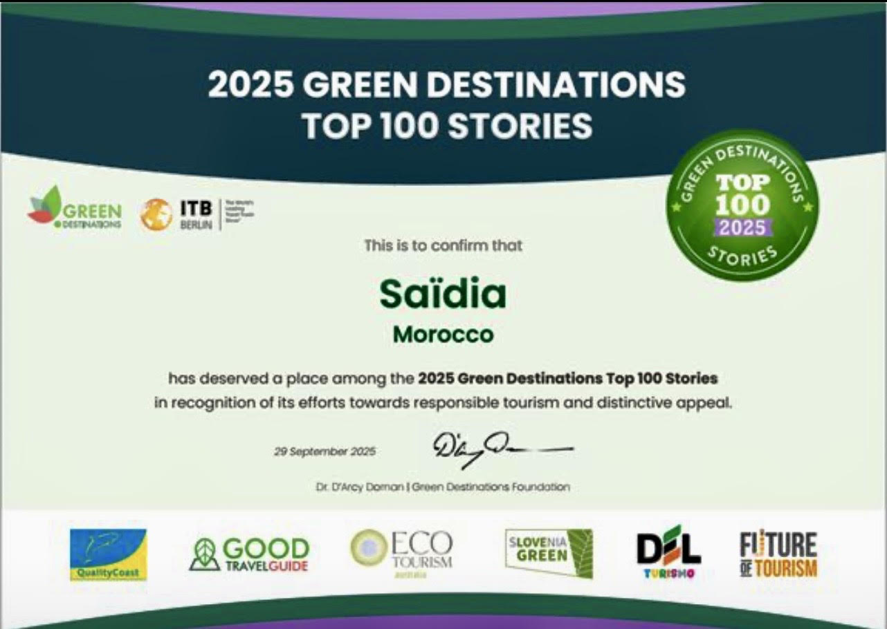 La station balnéaire Saïdia Mediterrania, forte dans son registre de destination verte, vient justement d’être distinguée par Green Destinations lors du congrès mondial tenu à Montpellier (mention Bronze au Sustainable Destinations Awards) et inscrite dans le palmarès Top-100/Story, la destination revendique désormais une visibilité internationale qui dépasse largement le cadre national. Ces reconnaissances sanctionnent des choix concrets de lutte biologique contre les moustiques, protection du cordon dunaire, maintien du Pavillon Bleu…
