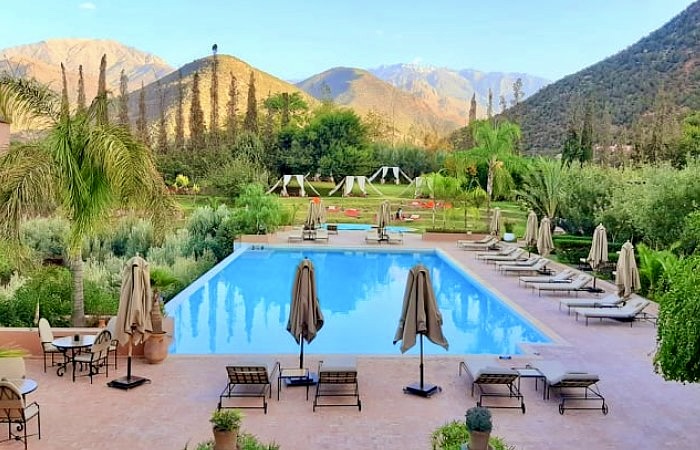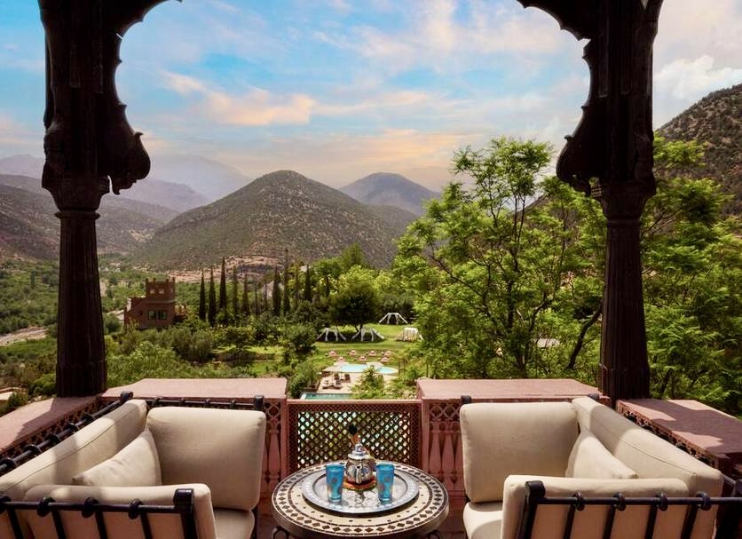 Si le Guide Michelin ne distingue pas les hôtels, la Kasbah Tamadot vient d’obtenir ses 3 Clefs Michelin de l’hospitalité pour excellence du service, raffinement du cadre, exigence environnementale et ancrage culturel profond. Bien implantée à flanc de montagne, à quelque 1 300 mètres d’altitude dans la vallée d’Asni, la Kasbah Tamadot semble flotter entre ciel et pierre. Derrière ses murs ocres bordés de cyprès et de bougainvilliers, on découvre un paysage intemporel de beauté naturelle, de l’hospitalité ancestrale et d’un luxe à visage humain.