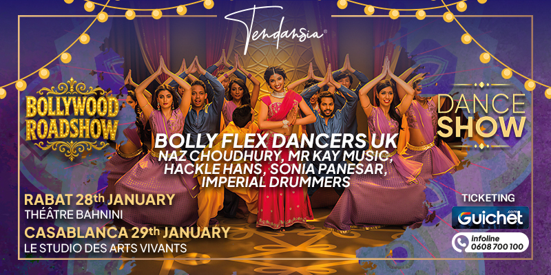 Tendansia est fière d’annoncer l’arrivée au Maroc d’un événement inédit : le Bollywood roadshow de dancing DJ Naz, qui inaugure le premier véritable spectacle 100 % Bollywood sur la scène du Royaume. Portée par une esthétique flamboyante, une énergie chorégraphique irrésistible et la narration grandiose propre au genre, cette création immersive promet un moment fort du début d’année, offrant au public la promesse d’une expérience sensorielle totale au cœur d’un univers où musique, danse, lumière et émotion se déploient comme dans un film à ciel ouvert. Le spectacle fera escale pour deux représentations exclusives : le 28 janvier au théâtre Bahnini de Rabat et le 29 janvier au Studio des Arts Vivants de Casablanca.