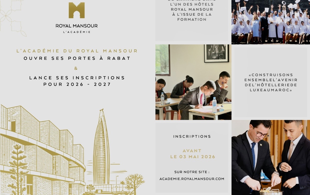 Le groupe Royal Mansour annonce l’ouverture, à Rabat, de l’Académie Royal Mansour, établissement de formation dédié aux métiers de l’hôtellerie et de la restauration. Les inscriptions pour l’année scolaire 2026–2027 sont désormais ouvertes, avec une date de clôture fixée au 3 mai 2026.