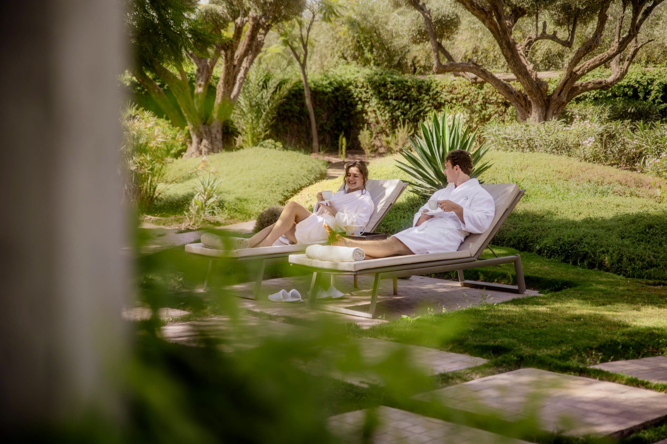 Le spa complète l’offre avec des rituels en duo,  massages synchronisés, accès privatif au jacuzzi et pauses infusion-pâtisseries marocaines.