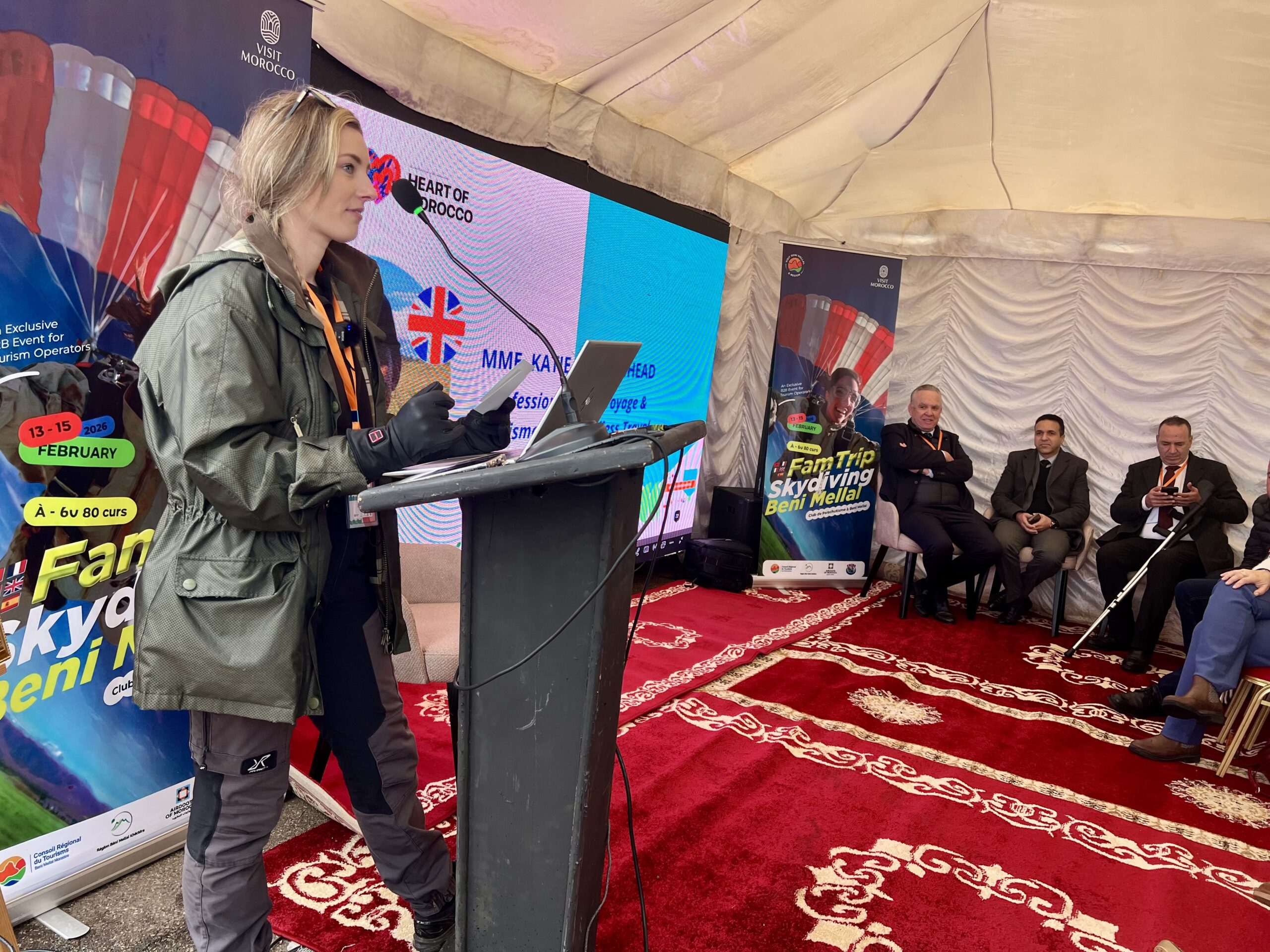 Harnachée à son moniteur, elle embarque pour un saut tandem. À l’atterrissage, encore saisie par l’intensité de l’expérience, elle nous confie : « Pour vendre une expérience, il faut la vivre. Ce saut me permet de comprendre exactement ce que ressentiront mes clients. C’est un produit émotionnel très fort, parfaitement compatible avec une clientèle MICE et incentive. » Puis, elle insiste sur la valeur commerciale en déclarant que « Béni Mellal offre un avantage rare : proximité de Casablanca et Marrakech, météo favorable, coût compétitif. On peut construire des programmes premium courts avec un impact mémorable. »