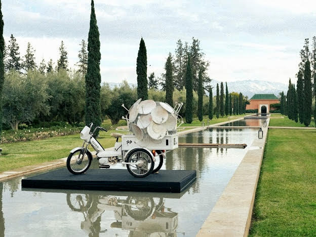 Hiba Baddou, avec sa Peugeot 103 hérissée de paraboles, a introduit une tension critique rarement tolérée dans l’univers hôtelier haut de gamme. Son œuvre parlait frontalement de circulation d’images, de désir d’ailleurs et d’économie du signal, une mise en abyme pertinente au sein d’un lieu dédié au voyage.