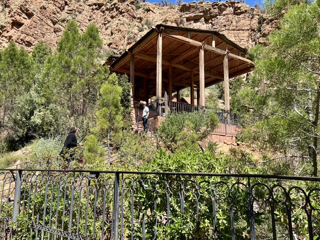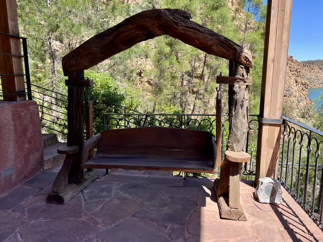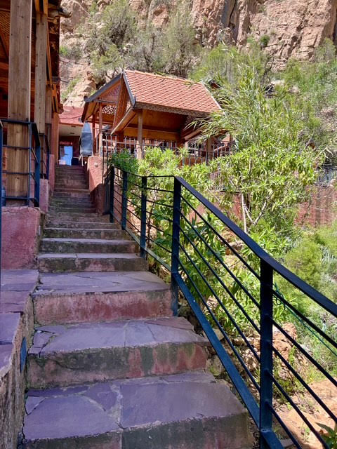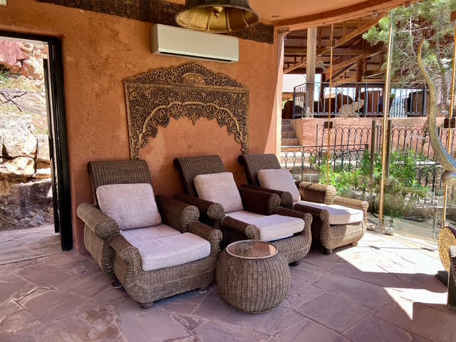 Accessible uniquement par bateau depuis le lac de Bin El Ouidane, ce site s’inscrit à même la falaise, dans une anfractuosité naturelle enveloppée d’une végétation dense et inattendue. Le contraste est immédiat, à la rudesse minérale du canyon répond une installation maîtrisée, presque invisible depuis l’extérieur, qui ne se dévoile qu’au dernier moment.