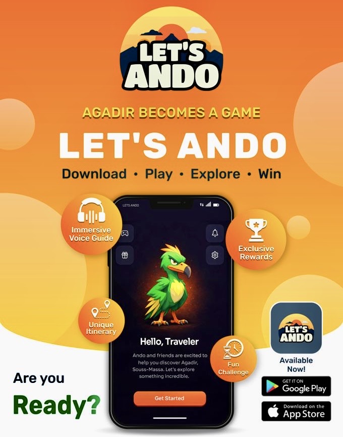 À rebours des applications touristiques génériques, souvent limitées à l’agrégation d’informations, Let’s Ando introduit à Agadir un modèle hybride où narration immersive, gamification et activation économique locale convergent. Développée par la startup GAMISOUSS, portée par un collectif de jeunes talents issus de la région Souss-Massa, l’application est officiellement lancée ce samedi 25 avril 2026 à 10h30 au Centre d’Information Touristique d’Agadir.